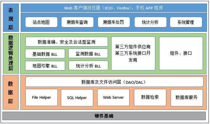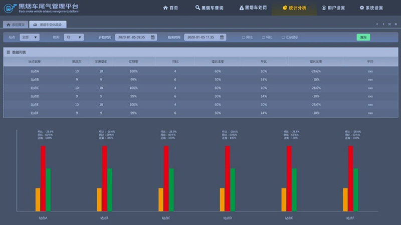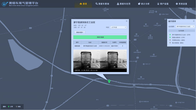 黑煙車(chē)尾氣管理平臺(tái)是依據(jù)地方監(jiān)測(cè)管理規(guī)范對(duì)機(jī)動(dòng)車(chē)尾氣排放污染物進(jìn)行監(jiān)測(cè),功能完整,設(shè)計(jì)特點(diǎn)突出。實(shí)時(shí)采集所有途徑車(chē)輛的基本信息并將數(shù)據(jù)發(fā)送平臺(tái),并含有統(tǒng)計(jì)分析、黑煙車(chē)查詢(xún)和處罰、用戶(hù)設(shè)置、系統(tǒng)設(shè)置等相關(guān)功能。