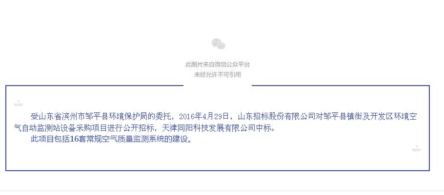 同陽(yáng)科技中標(biāo)山東省鄒平縣鎮(zhèn)街及開(kāi)發(fā)區(qū)環(huán)境空氣自動(dòng)監(jiān)測(cè)站項(xiàng)目
