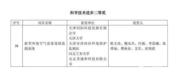 天津同陽科技發(fā)展有限公司研發(fā)的新型環(huán)境空氣質量連續(xù)監(jiān)測系統(tǒng)獲天津市科技進步二等獎