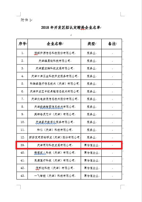 更新時間: 點擊:17361 所屬欄目:公司新聞 Update Time: Hits:17361 Belong Column:News日前,天津經濟技術開發(fā)區(qū)根據《天津經濟技術開發(fā)區(qū)促進科技重點企業(yè)發(fā)展的實施辦法》(津開發(fā)[2017]45號)有關規(guī)定,經企業(yè)申報、專家評審,認定天津同陽科技發(fā)展有限公司等企業(yè)為瞪羚企業(yè)。