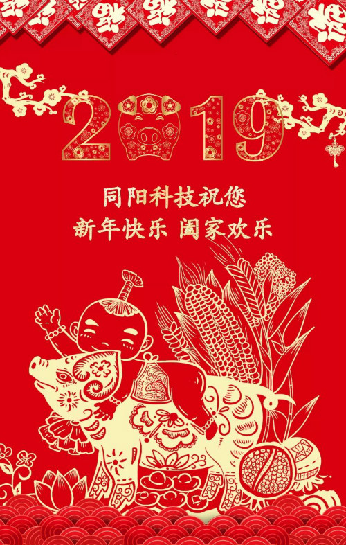 同陽科技給您拜年啦! 更新時間:2019-02-04 點擊:20977 所屬欄目:公司新聞 Update Time:2019-02-04 Hits:20977 Belong Column:News 瑞犬辭舊歲,金豬迎新春。愿您在新的一年,抱著平安,擁著健康,揣著幸福,攜著快樂,摟著溫馨,享著甜蜜,帶著財運,拽著吉祥,邁著歡快的步子踏入新的一年,天津同陽科技發(fā)展有限公司恭祝大家新春快樂!