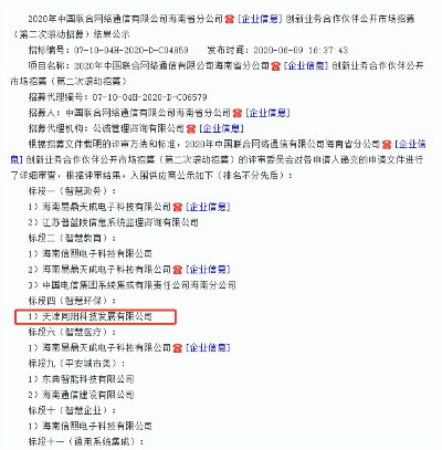 同陽(yáng)科技中標(biāo)海南聯(lián)通創(chuàng)新業(yè)務(wù)合作伙伴公開市場(chǎng)招募項(xiàng)目