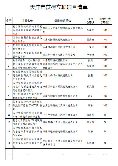更新時間: 點擊:15115 所屬欄目:公司新聞 Update Time: Hits:15115 Belong Column:News近日,科技部公示了“科技助力經(jīng)濟2020”重點專項擬立項項目,天津同陽科技發(fā)展有限公司牽頭承擔(dān)的【基于大數(shù)據(jù)的智能工況在線監(jiān)測平臺】項目成功入選。“科技助力經(jīng)濟2020”重點專項由科技部發(fā)起,定位于支持一批覆蓋國民經(jīng)濟主要行業(yè)的技術(shù)創(chuàng)新項目,特別是短期內(nèi)能見到實效、對復(fù)工復(fù)產(chǎn)有直接帶動作用的技術(shù)成果轉(zhuǎn)化落地項目,以幫助一批優(yōu)秀科技型企業(yè)克服疫情帶來的短期困難。