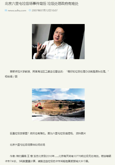 北京六里屯垃圾場異味污染,垃圾處理問題政府有難處,首都師范大學教授、民革海淀區(qū)工委主任雷達說:“最好的垃圾處理辦法就是源頭處理?!比绾纹胶饫幚砑熬用裆瞽h(huán)境的關系變得尤為重要。
