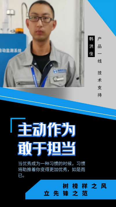 自5月份入職以來,主動學(xué)習(xí)、快速掌握產(chǎn)品相關(guān)知識、提高工作技能,能與同事配合良好?,F(xiàn)已具備獨(dú)立處理機(jī)動車尾氣遙感產(chǎn)品現(xiàn)場勘查、項目安裝調(diào)試、售后技術(shù)支持能力。