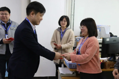 更新時(shí)間: 點(diǎn)擊:16581 所屬欄目:公司新聞 Update Time: Hits:16581 Belong Column:News日月開新元,天地又一春。2021年2月19日(正月初八),同陽人迎來了辛丑牛年的第一個(gè)工作日。大家迅速調(diào)整狀態(tài),投入到有序的工作中,以全新的姿態(tài)迎接2021年更大的挑戰(zhàn)。在這開工大吉的日子,公司總經(jīng)理陳文亮攜管理團(tuán)隊(duì)深入到各部門,為同事們逐個(gè)派發(fā) “開工利是”紅包,并為大家送去新春的祝福和濃濃的關(guān)懷,現(xiàn)場氣氛熱鬧非凡。