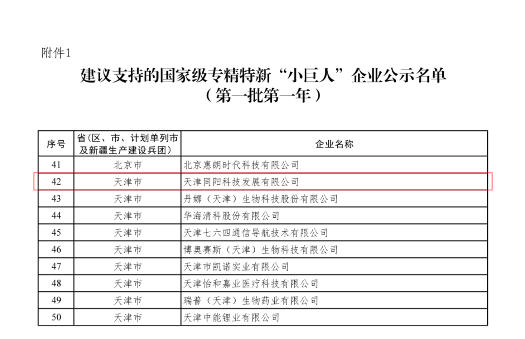 “小巨人,大作為” | 同陽(yáng)科技入選工信部首批建議支持的國(guó)家級(jí)專精特新“小巨人”企業(yè)名單