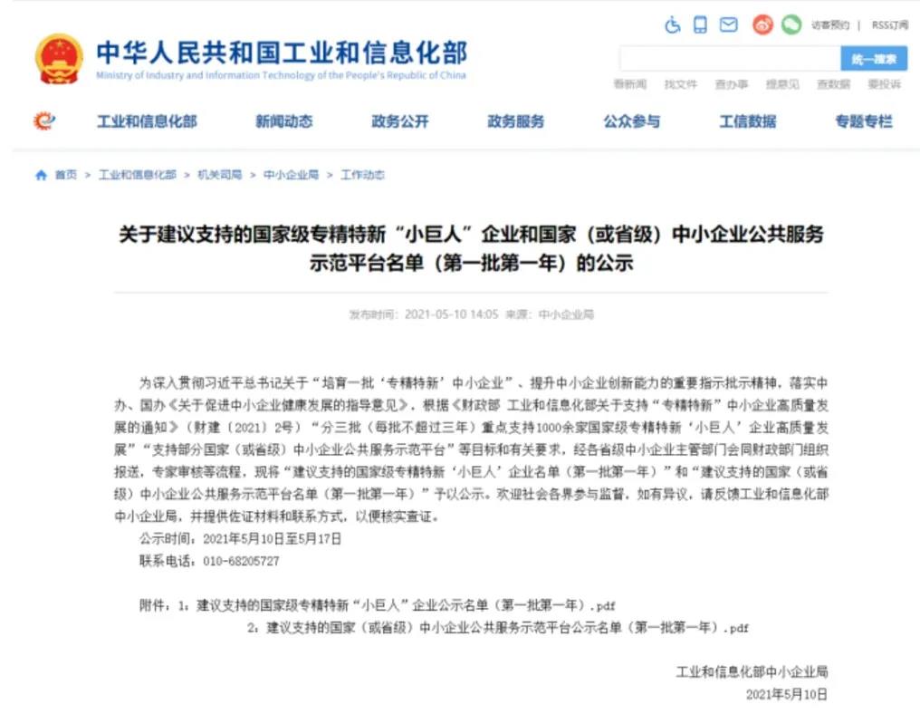 工信部公示名單