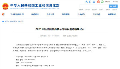 同陽科技入選工信部2021年新型信息消費示范項目名單