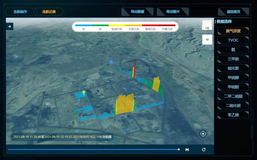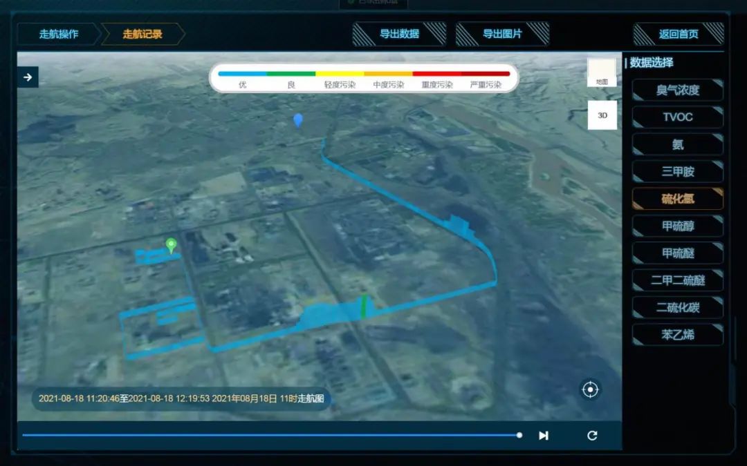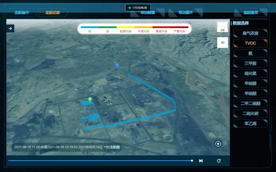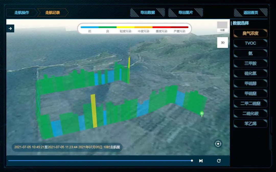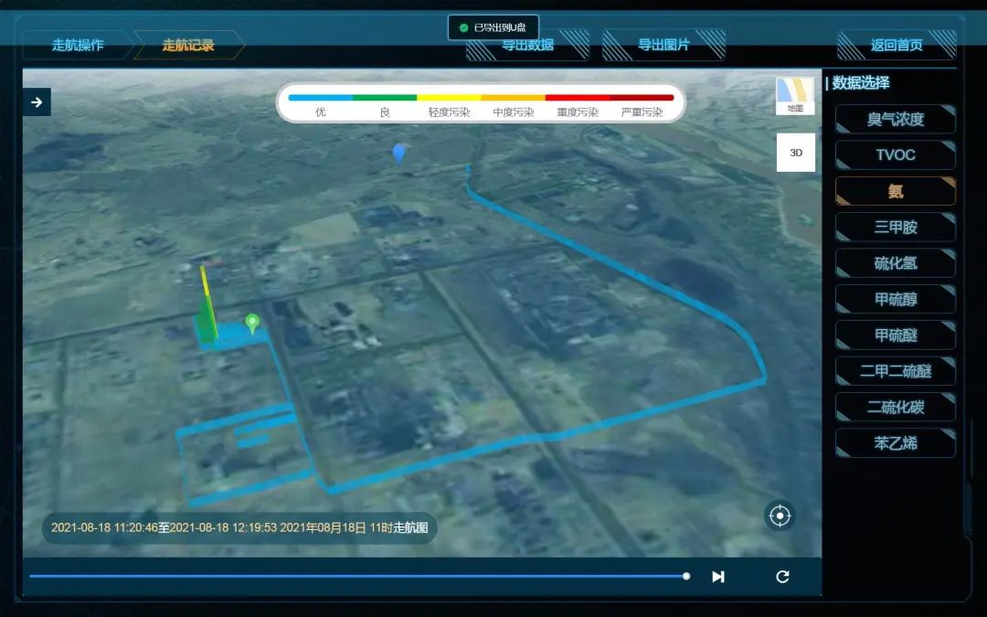 此次走航期間,僅發(fā)現(xiàn)2處臭氣濃度監(jiān)測(cè)數(shù)值相對(duì)較高的區(qū)域。第一個(gè)高值區(qū)域?yàn)槟承虏牧瞎径趶S區(qū),走航車經(jīng)過該區(qū)域時(shí),走航地圖顯示臭氣濃度以黃色柱形圖顯示,屬輕度污染,結(jié)合導(dǎo)出的走航數(shù)據(jù)發(fā)現(xiàn),該區(qū)域的臭氣濃度監(jiān)測(cè)因子最高值達(dá)到13(OU),雖未超標(biāo),但略高于其他區(qū)域監(jiān)測(cè)數(shù)值;第二個(gè)高值區(qū)域?yàn)槟硽怏w生產(chǎn)單位廠區(qū)附近,現(xiàn)場(chǎng)人員經(jīng)過該區(qū)域時(shí)能夠聞到空氣中的臭味,因此在該區(qū)域進(jìn)行了短暫的停留,后結(jié)合導(dǎo)出的走航地圖及走航數(shù)據(jù)發(fā)現(xiàn),該區(qū)域的臭氣濃度監(jiān)測(cè)因子數(shù)值最高達(dá)到19(OU),也未超過國家二級(jí)標(biāo)準(zhǔn)規(guī)定的20(OU)濃度要求。綜合分析,本次走航監(jiān)測(cè)區(qū)域整體空氣質(zhì)量較為優(yōu)良,無長(zhǎng)時(shí)間、氣味明顯的惡臭污染,但應(yīng)該針對(duì)某新材料公司和某氣體生產(chǎn)企業(yè)進(jìn)行重點(diǎn)監(jiān)控。本次走航監(jiān)測(cè),為當(dāng)?shù)丨h(huán)境部門進(jìn)行重點(diǎn)區(qū)域惡臭污染排查提供了可靠的數(shù)據(jù)支撐,對(duì)于敦促企業(yè)進(jìn)行整改、確保該市環(huán)境空氣質(zhì)量維持優(yōu)良水平貢獻(xiàn)出了一份力量。