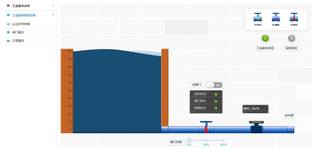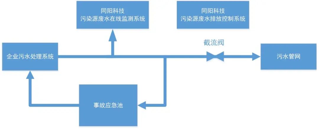 針對這個實際需求,同陽科技提供了廢水排放監(jiān)管解決方案。該方案在企業(yè)廢水排放口末端安裝電控截流閥,根據(jù)廢水水質(zhì)在線數(shù)據(jù),水質(zhì)一旦超標(biāo),系統(tǒng)會聯(lián)動電控截流閥切斷原排污管路,將超標(biāo)廢水導(dǎo)入事故應(yīng)急池中,避免超標(biāo)廢水流入污水管網(wǎng)。待企業(yè)排放的廢水檢測達(dá)標(biāo)后方可向環(huán)保部門申請向污水管網(wǎng)內(nèi)排污,將污染問題消除在萌芽階段,符合環(huán)保初衷。